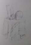 These sketches have been pulled out of a growing number of drawings made of Still Lifes over the last three months. They have become a regular excersise for me, mostly as studies of light and form. The subjects vary