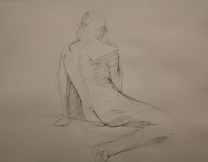 A study of bottles and a drapery in progress. A quick sketch of a woman’s back Two line drawings Another quick sketch Share this: Click to share on Facebook (Opens in new window) Facebook Click to share on X (Opens in new window) X Like Loading... Related