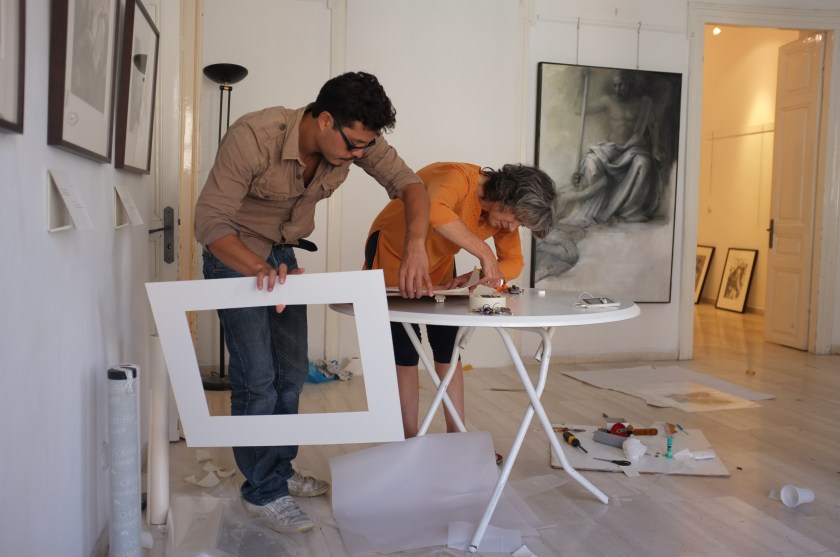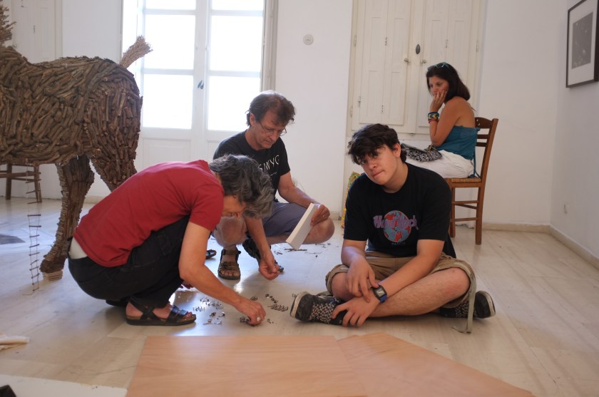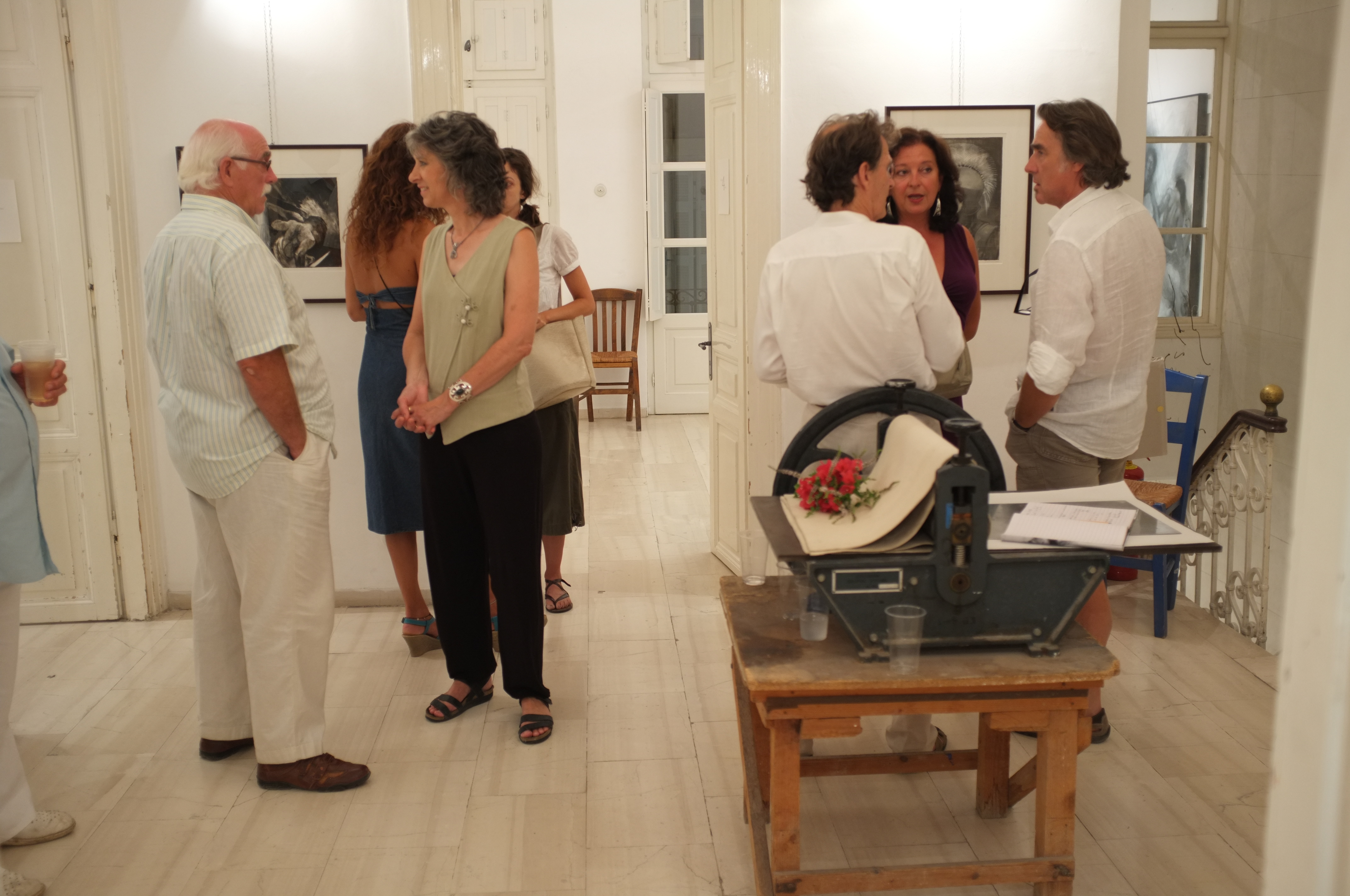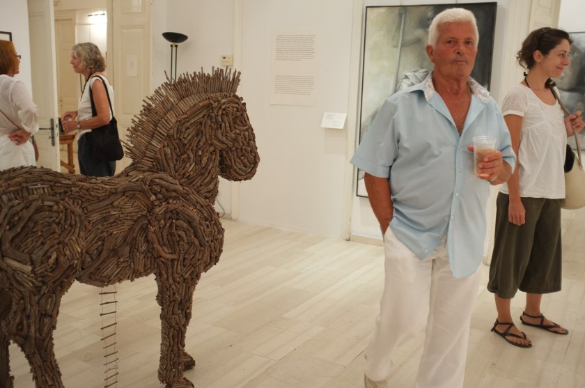 While on a recent visit to the island Paros, I had the distinct privilege of helping my teacher and friend, Jane Morris Pack, install her show of prints. Since I have known Jane, for about five years, she has held the idea of illustrating Homer’s Iliad. Alas, she has completed a wonderful body of monotypes and paintings revolving around this theme. After several days flurrying with activity the show was up and looked spectacular. If you would like to see the work or purchase an image or book, visit http://www.janemorrispack.com.