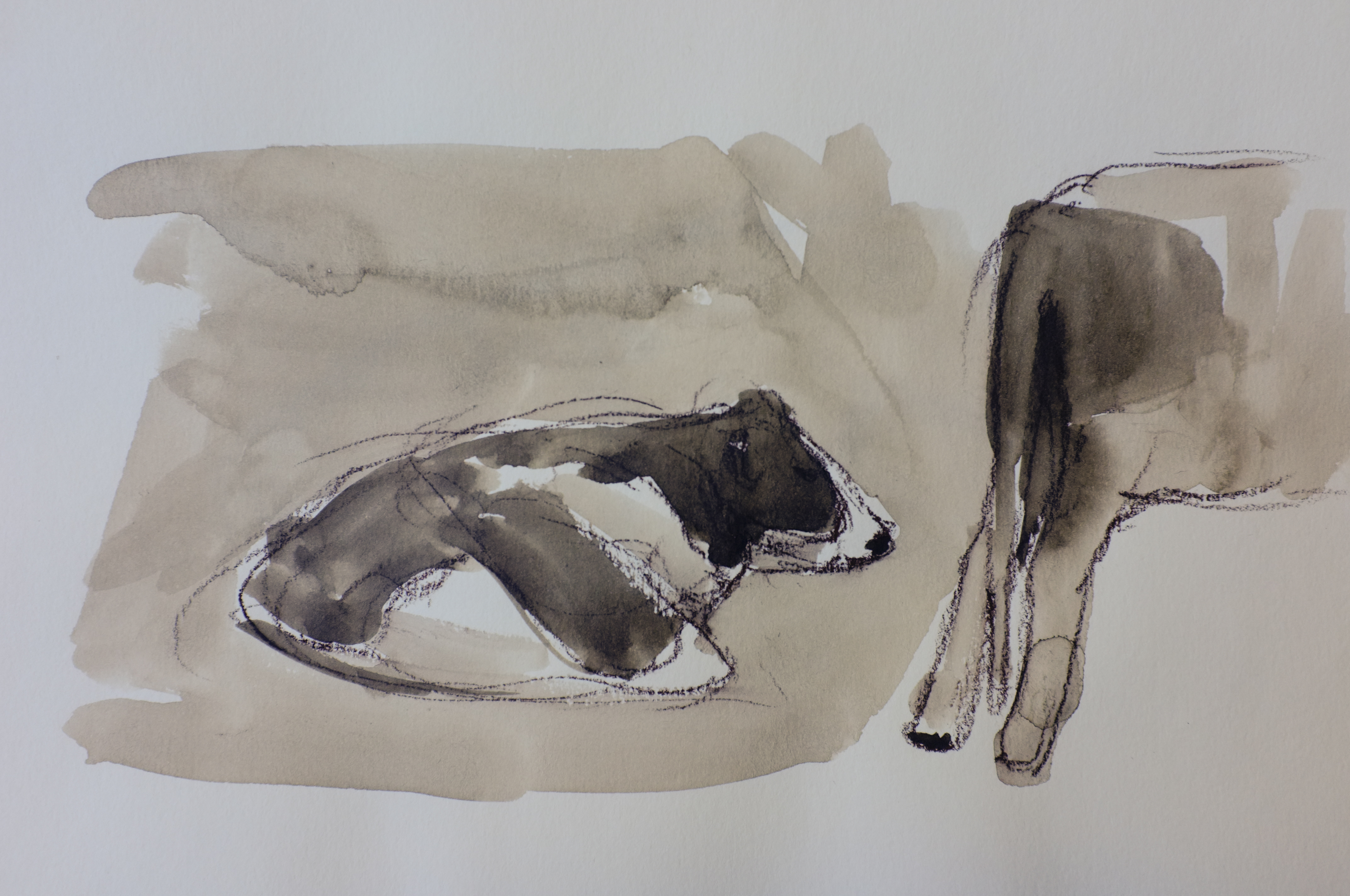 A New Year’s resolution of mine was to use a paint brush everyday along with drawing. I have come to really appreciate the variety of brushes I have and the study of their applications. To learn what each brush can be used for is such an experimental process. The above sketch was used with a small flat brush.