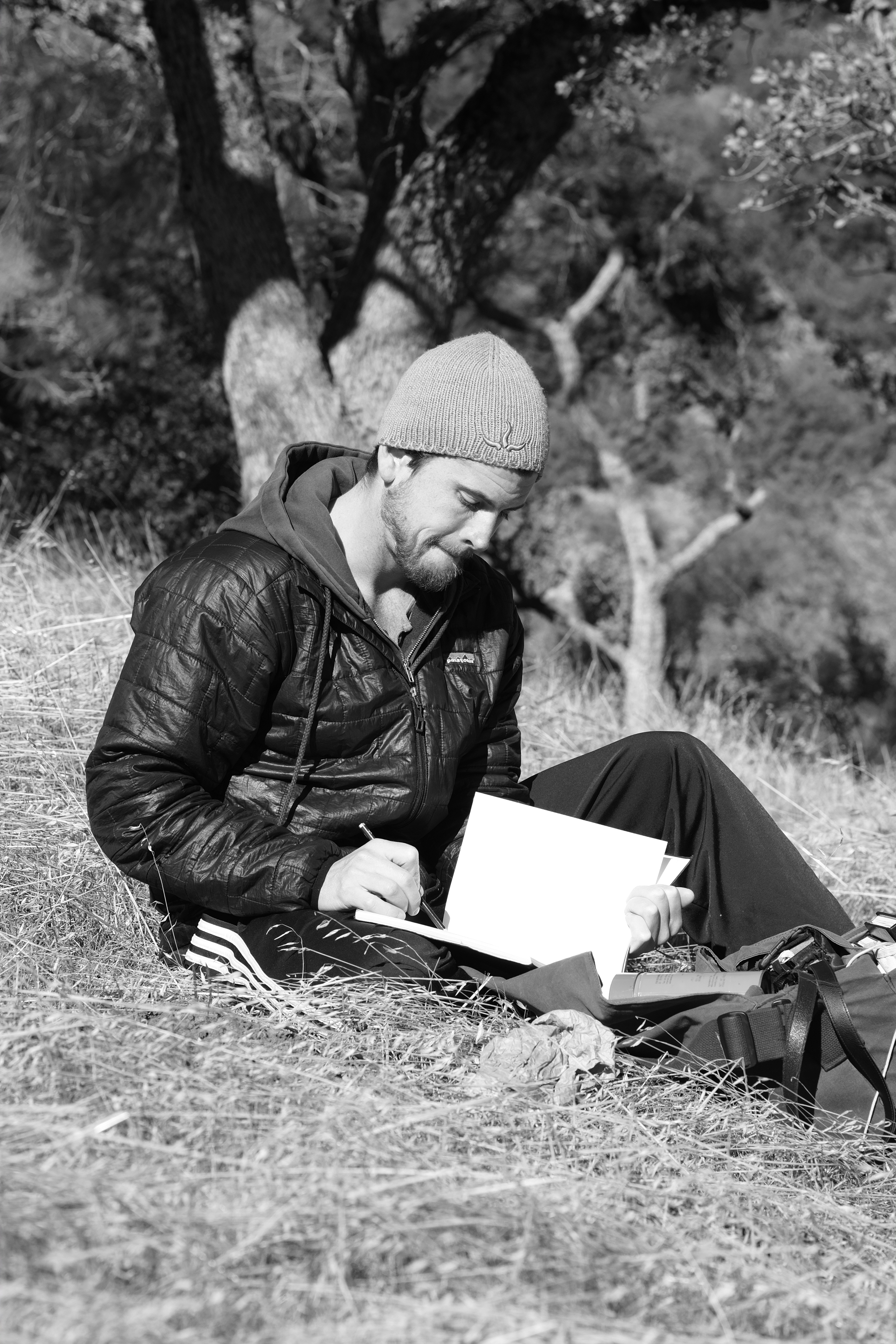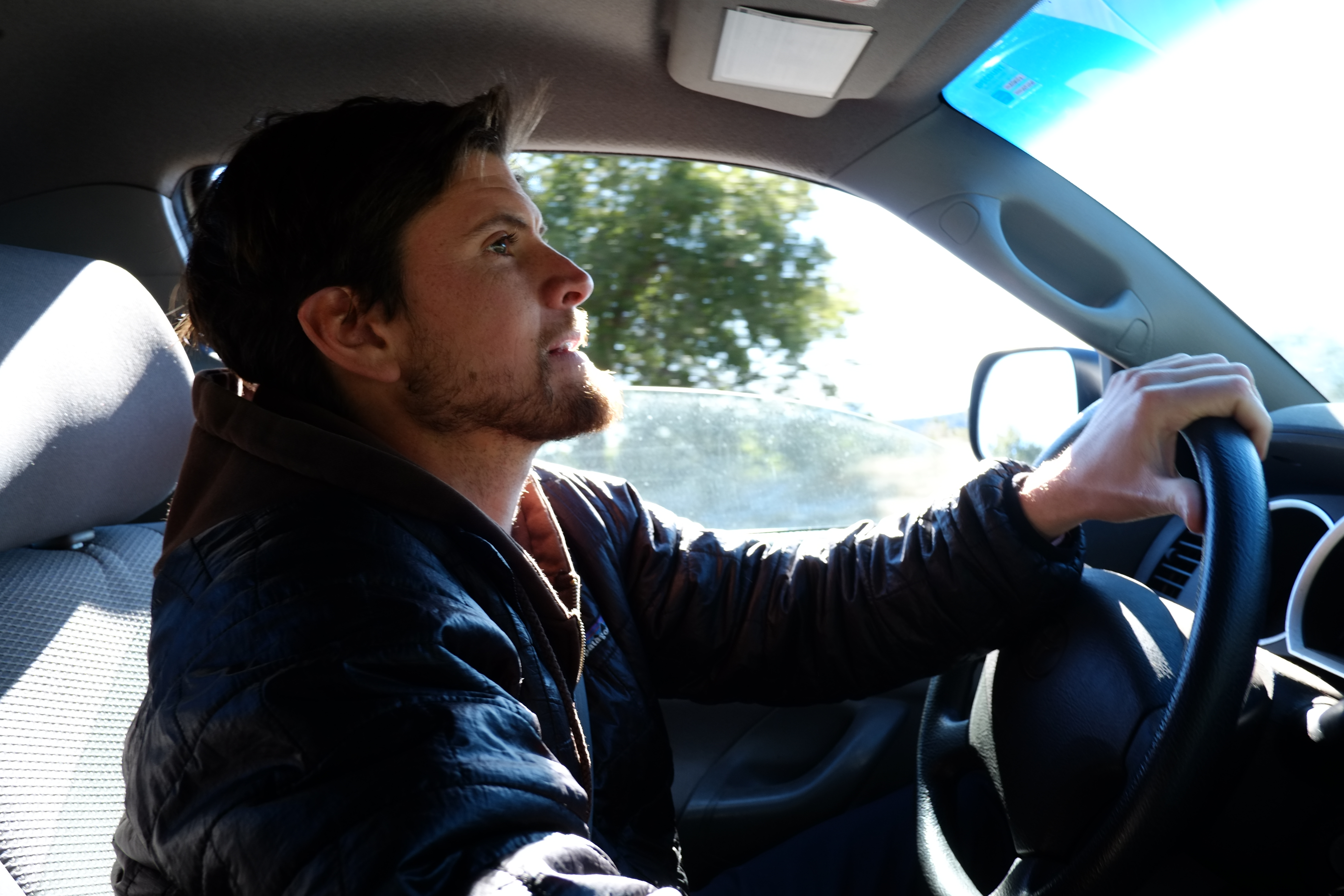A little while ago, my cousin visited me along the Central Coast. It was unusually cold while he was here. Nevertheless, we bundled up and explored some of the local countryside together. Here is a picture he took of me as we drove up Figueroa Mtn. Road.