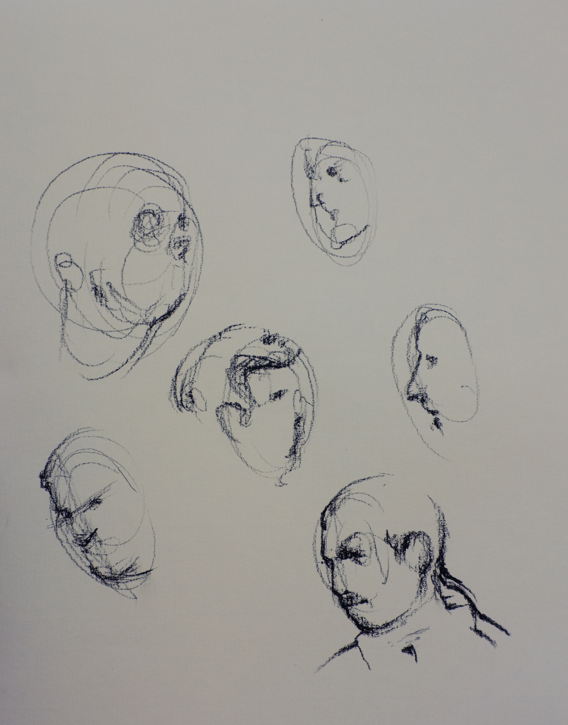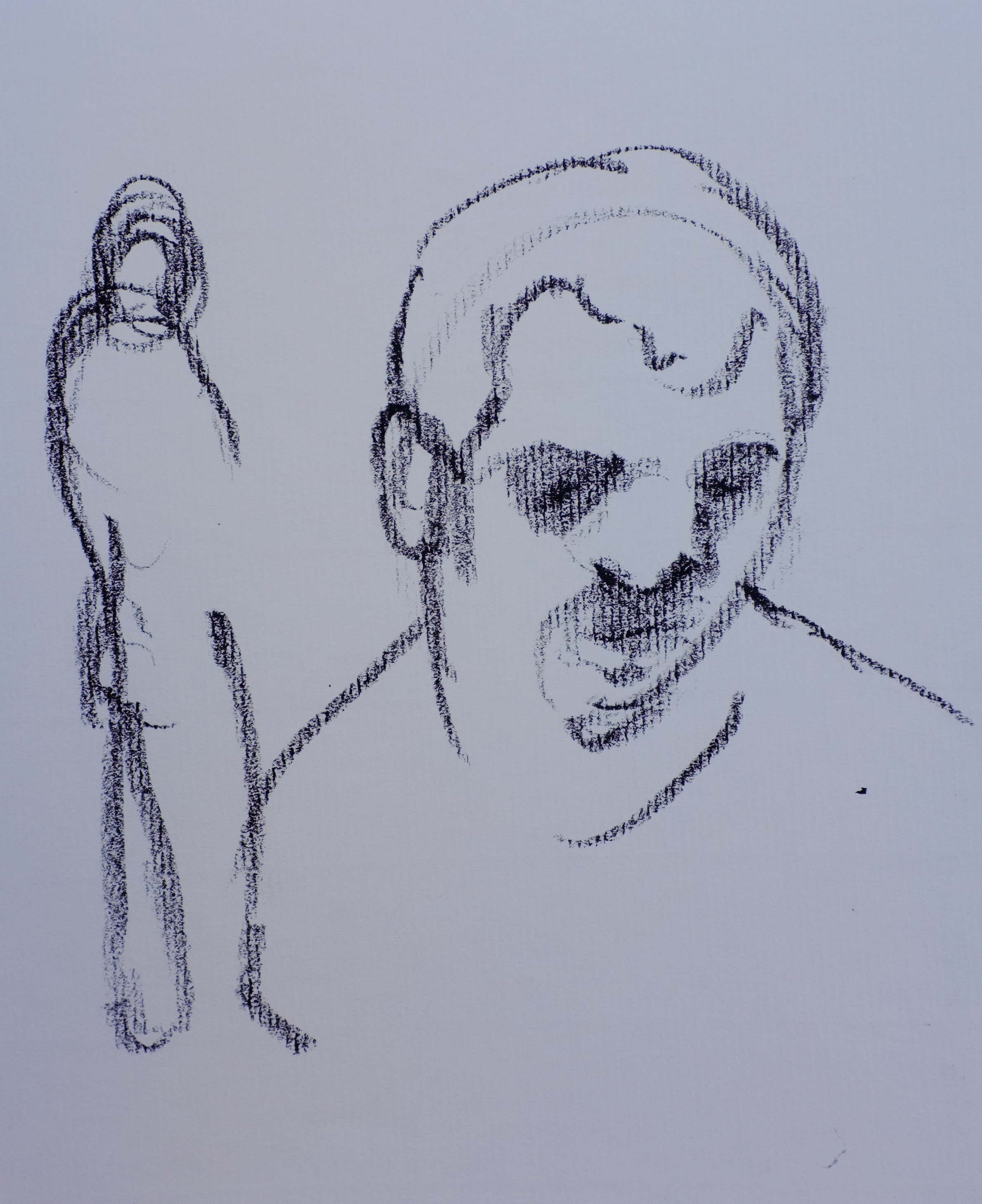 I have just had a fair amount of time spent in transit. I have found people watching/drawing a pastime that can keep me entertained for hours. Below are just a few of the resulting portraits, mostly of strangers. They are made with either the Pentel pen brush, charcoal or a Lithograph crayon on Fabriano paper. Perhaps of interest, I was found myself sitting across from and sketching Shepard Fairey at the LA airport. Try to pick him out.