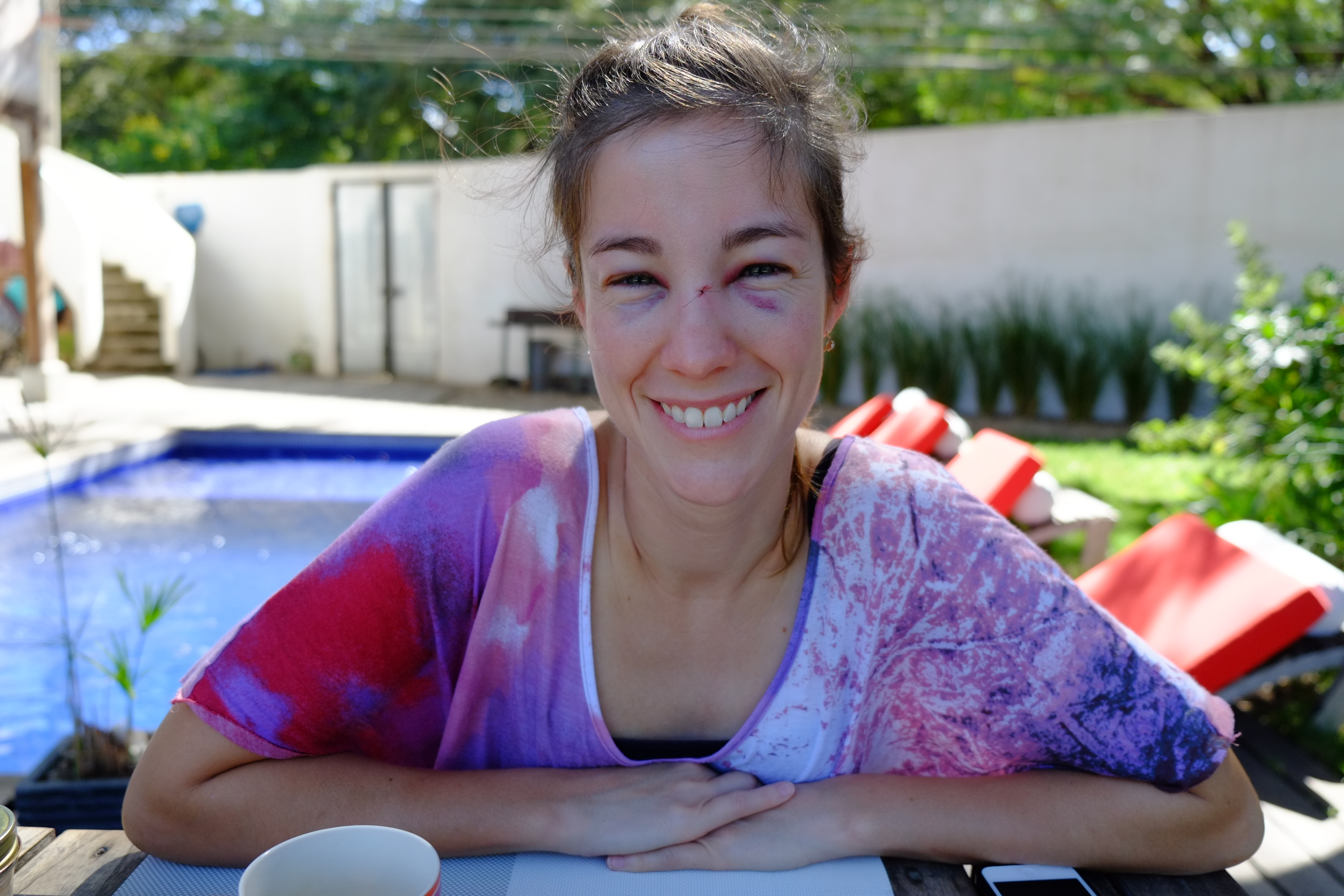 And then semi-disaster struck. Kristina’s surf board hit her in the nose under water. It warranted a stitch and induce some serious swelling and colorful eyes. As with pretty much everything, it could have been worse. Kristina took it remarkably well and we counted our lucky stars.