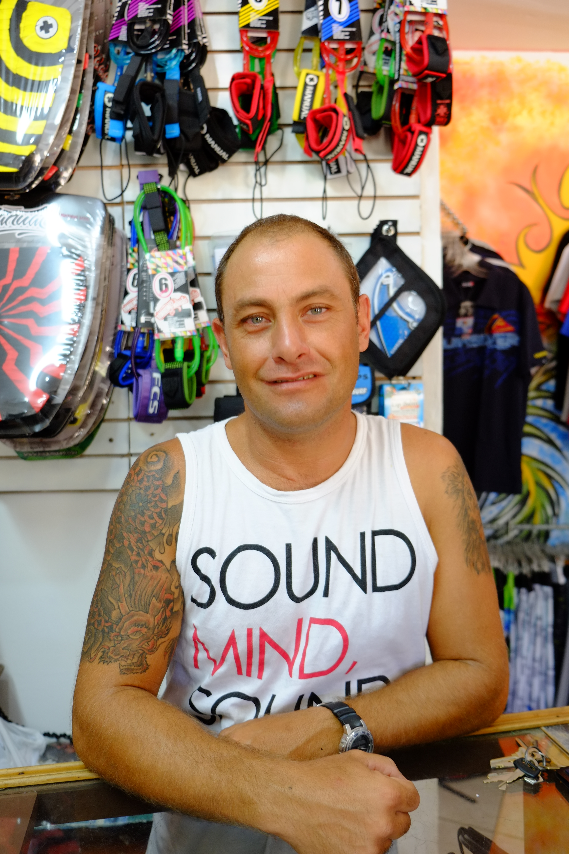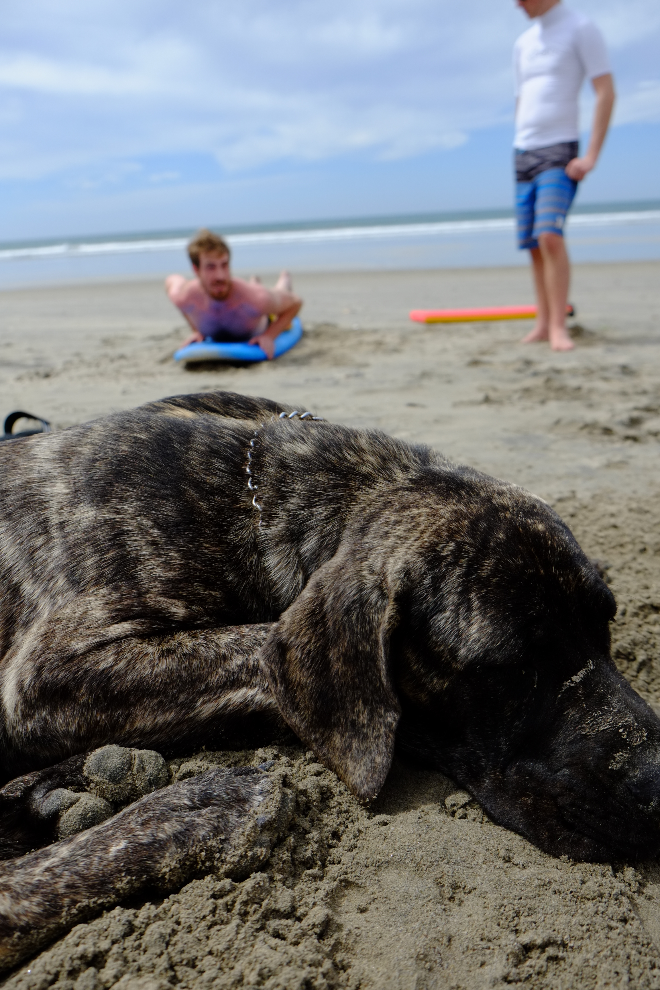 Mikey gave us a surf lesson while a few local dogs came by to find some lovin’.