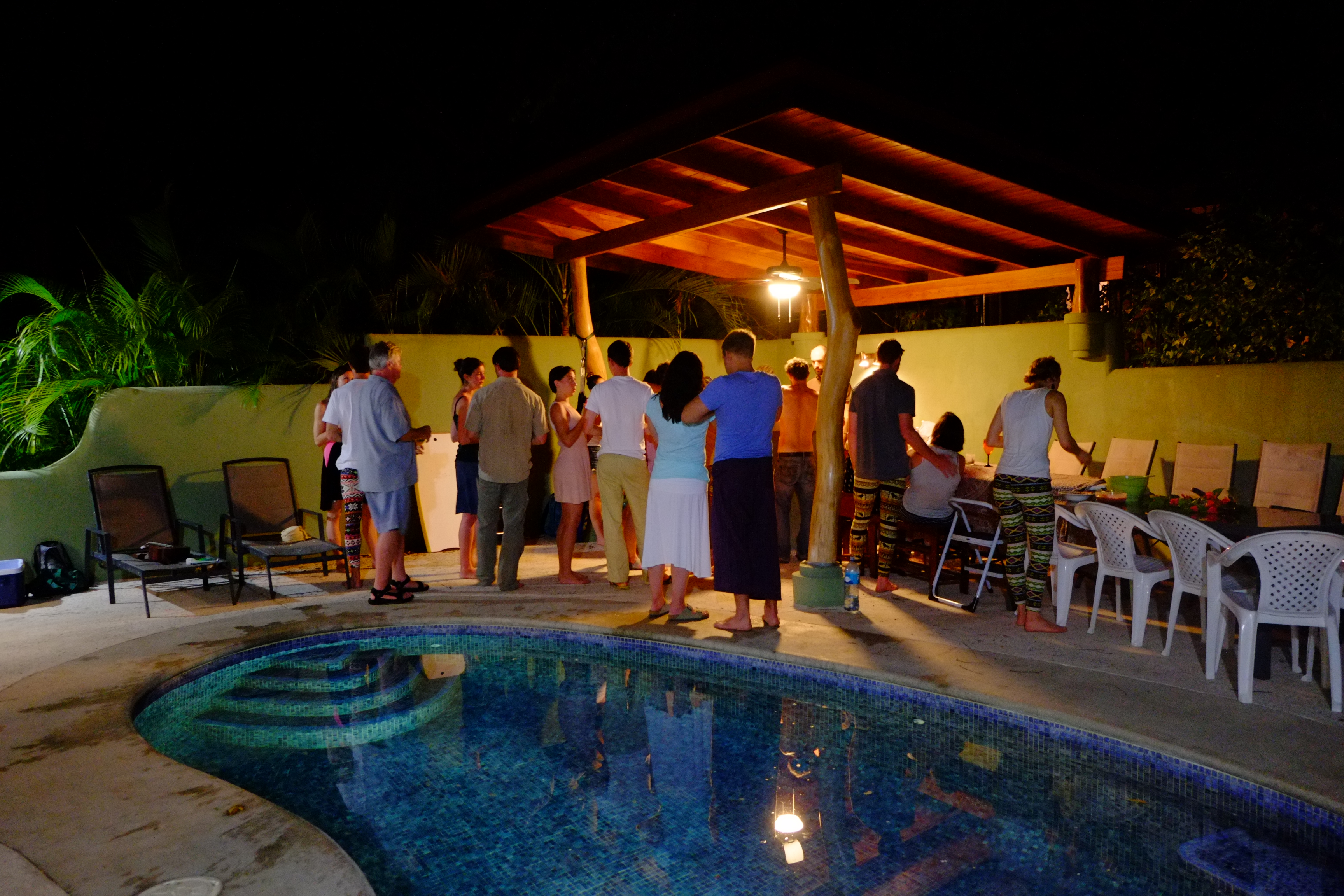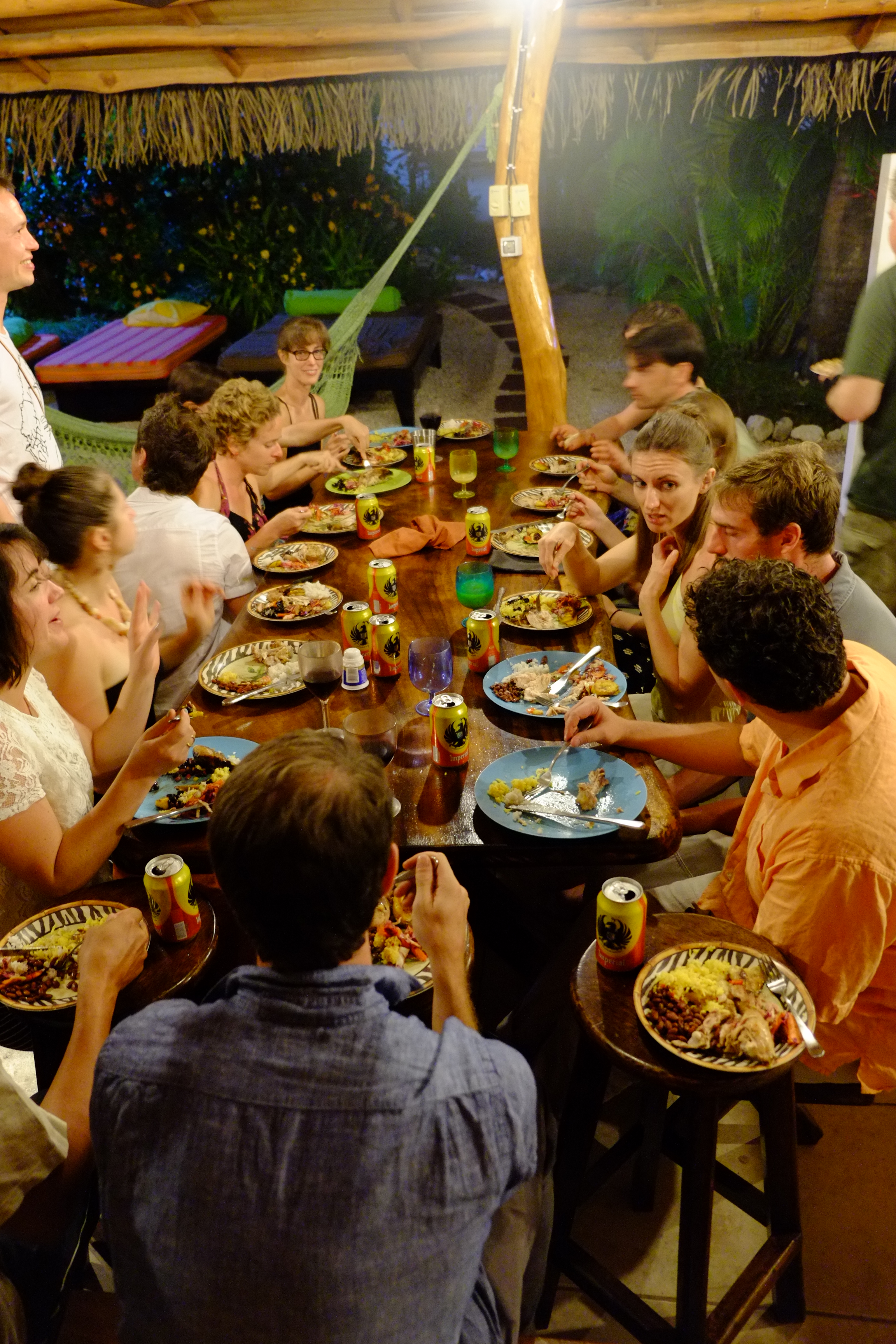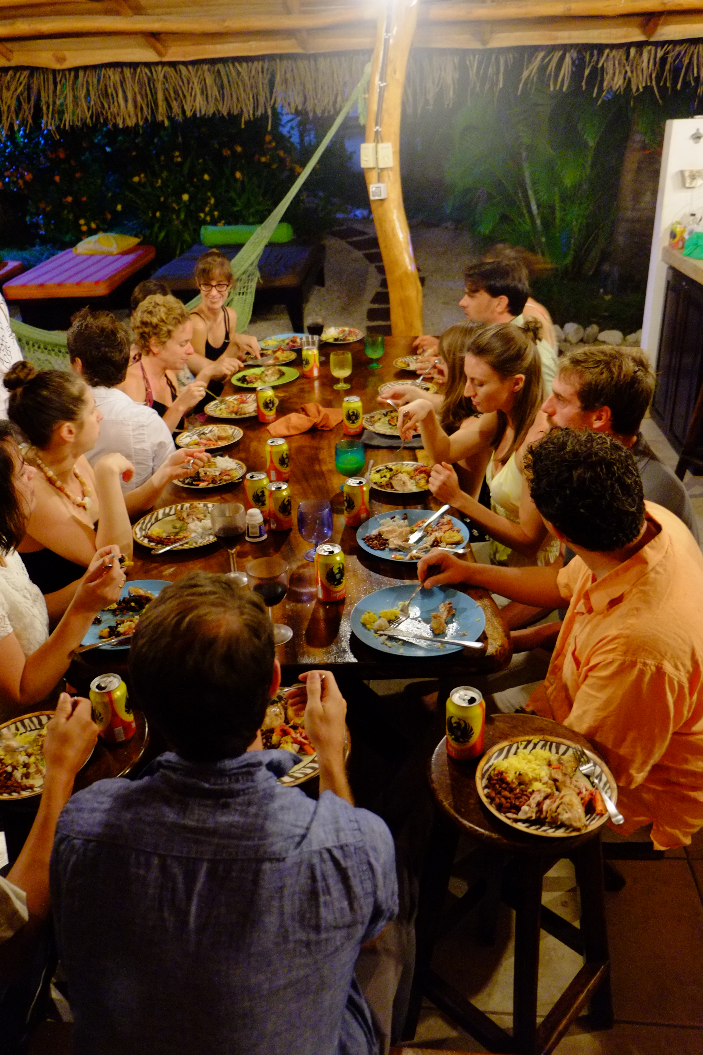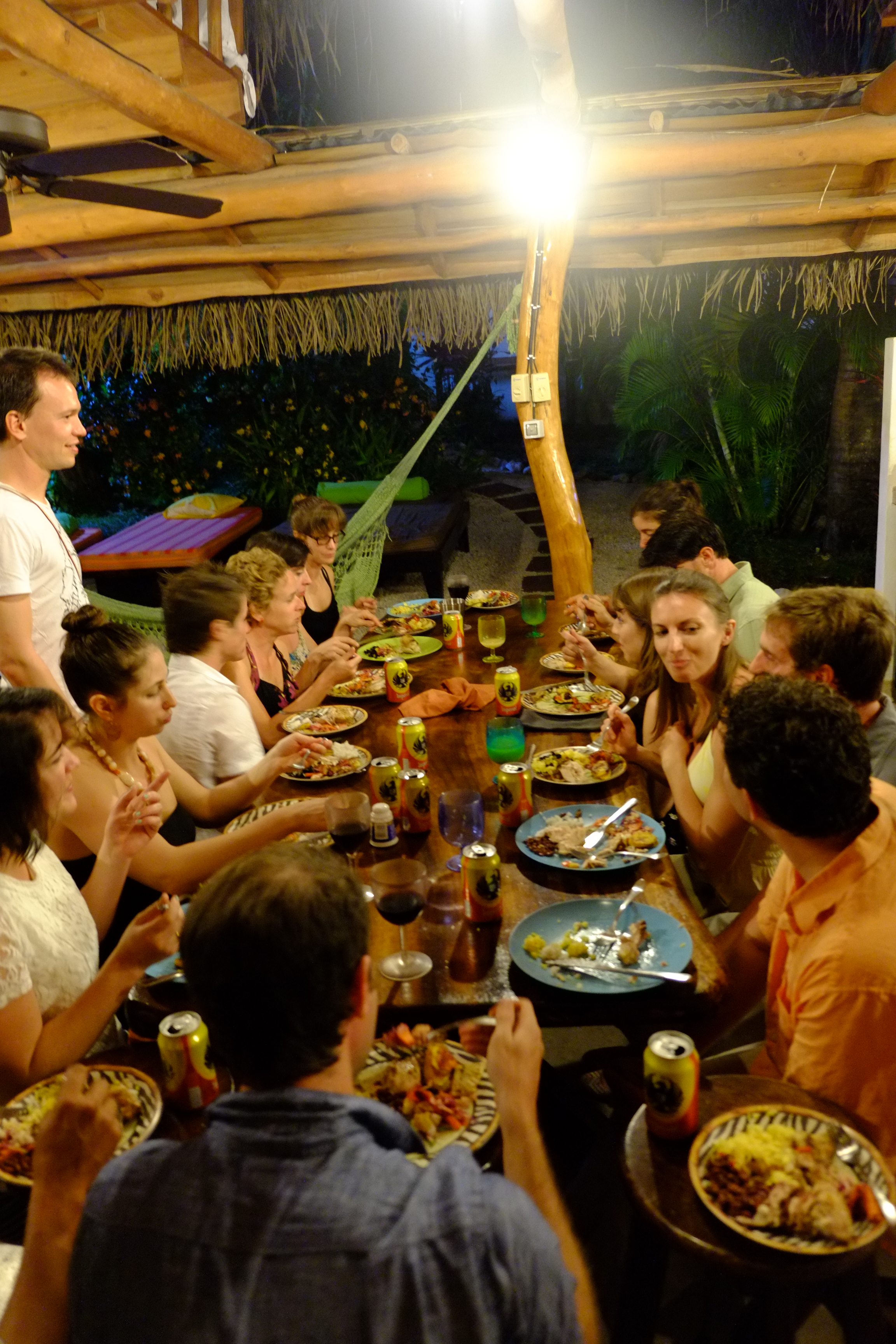 Another great meal. This time at Pura Villa. The center piece with wreath, machete and candles became our insignia. We extended the table with a surfboard. Never easy to accommodate over 20 people but these friends manage to make it look easy.