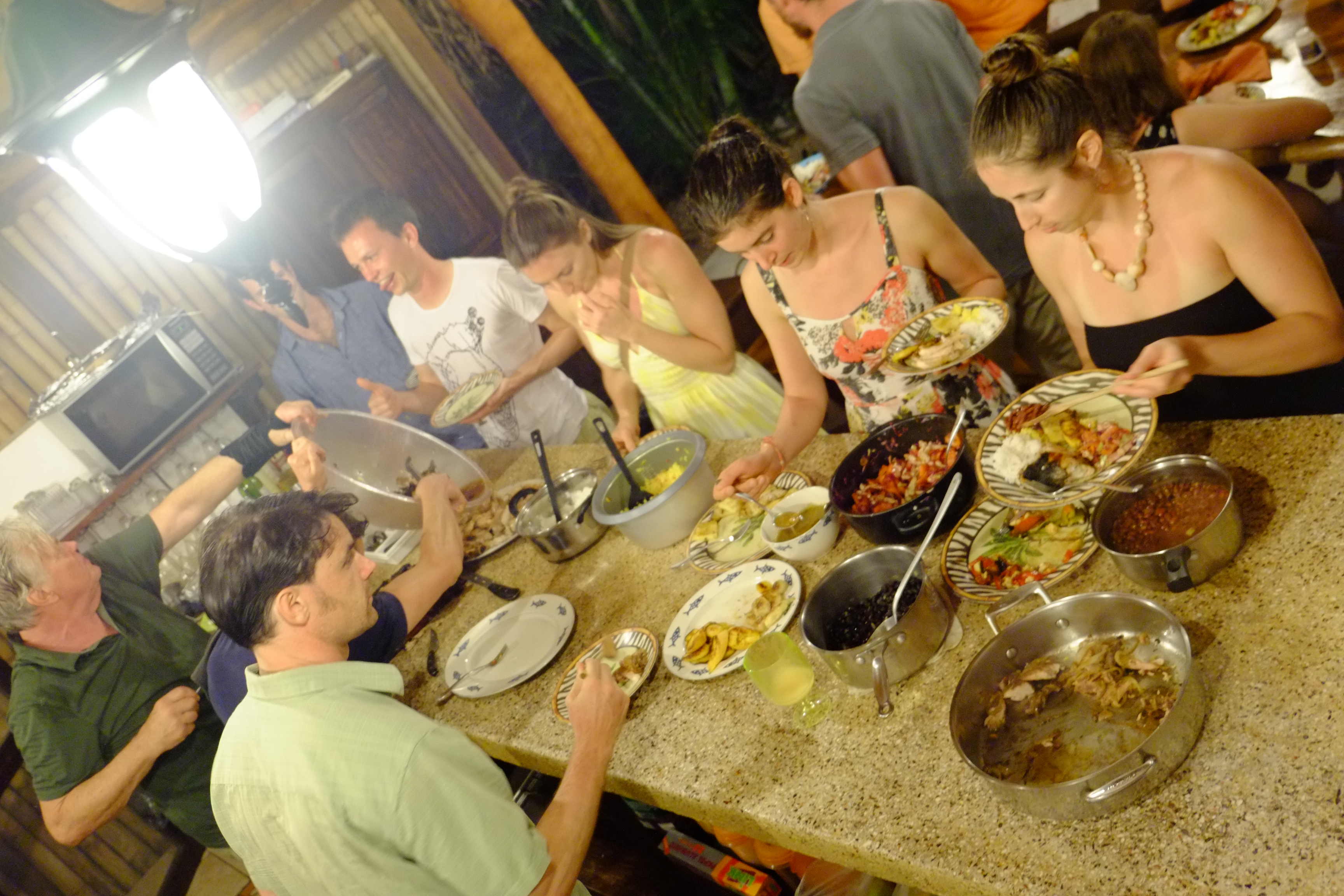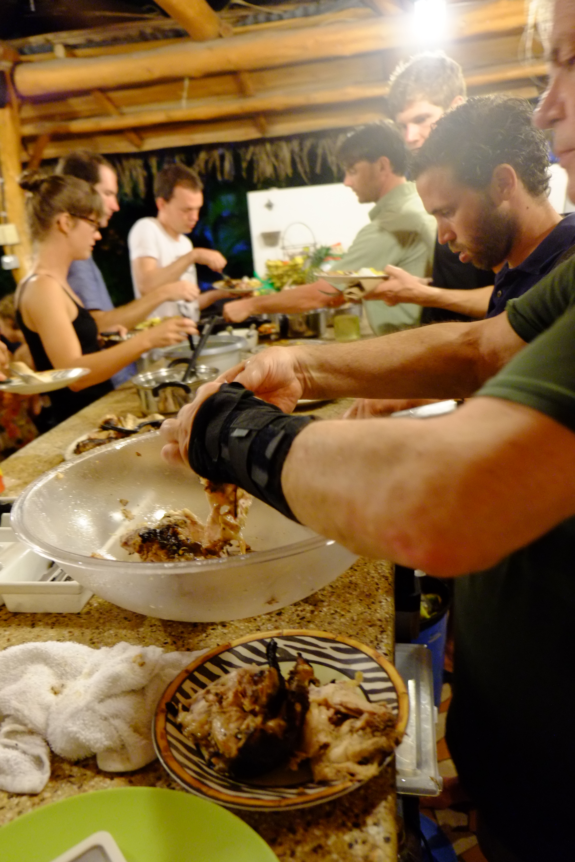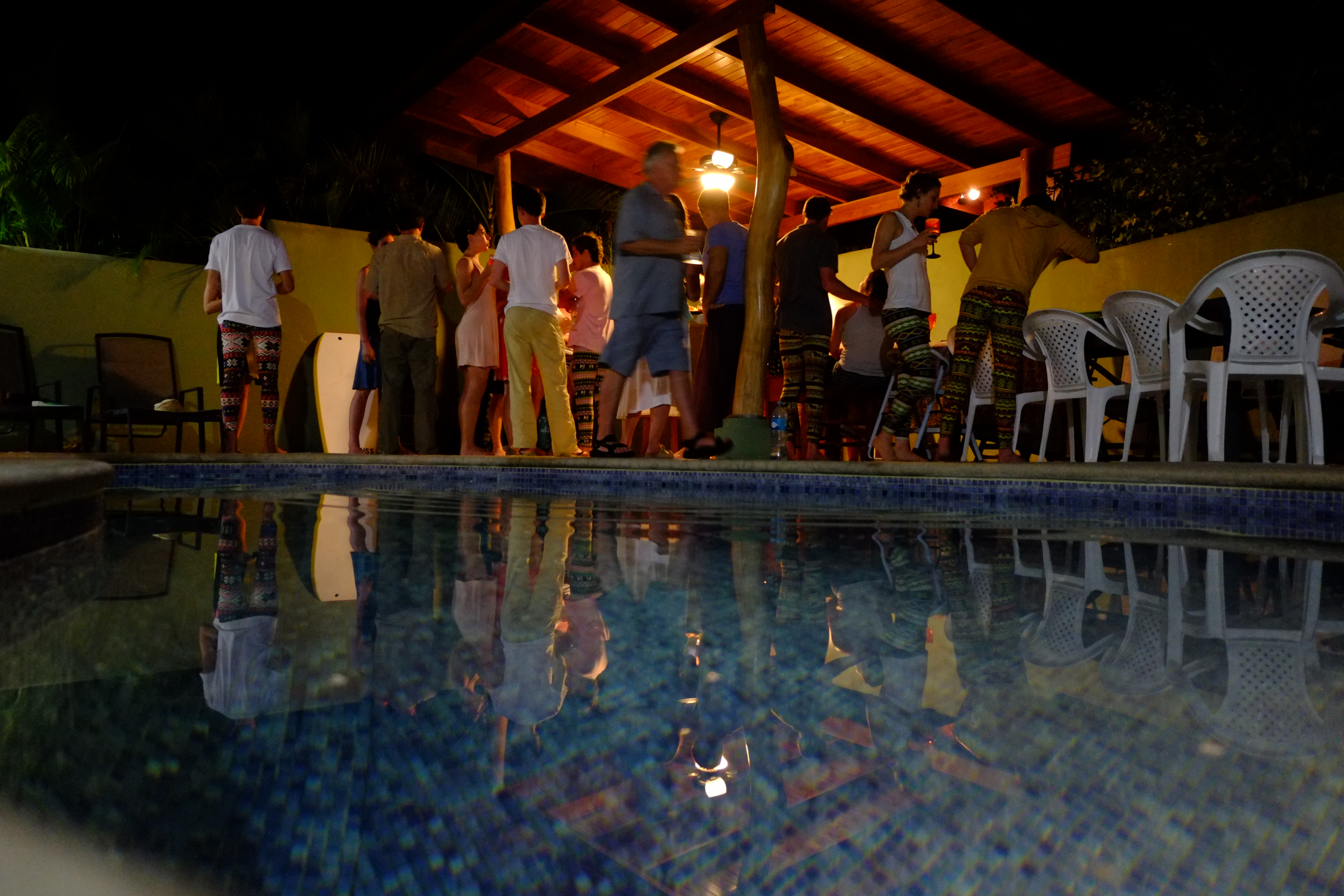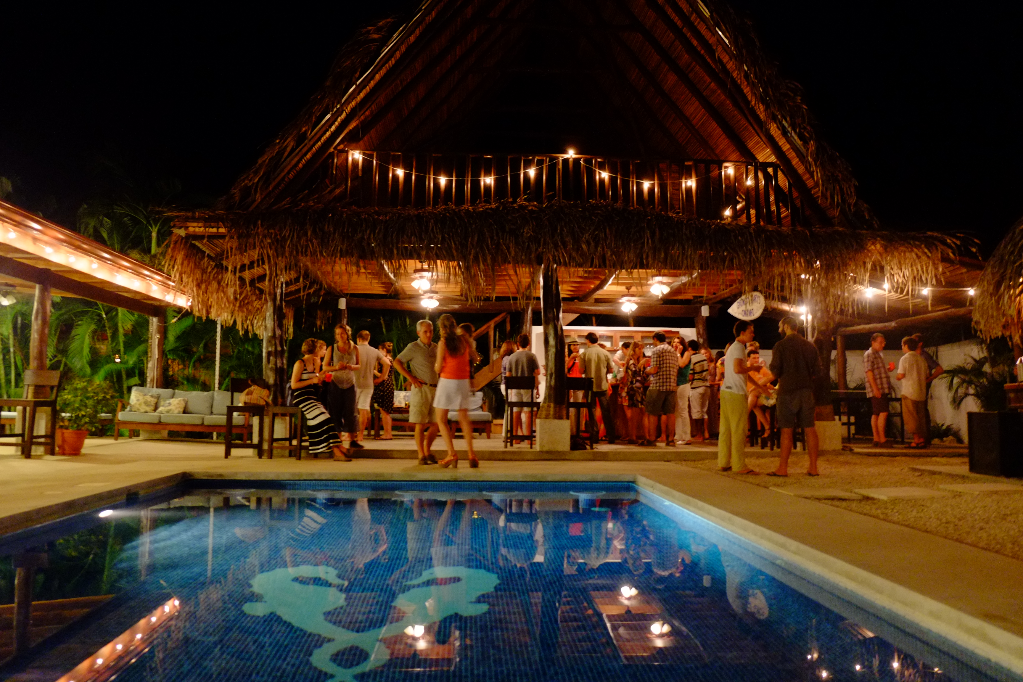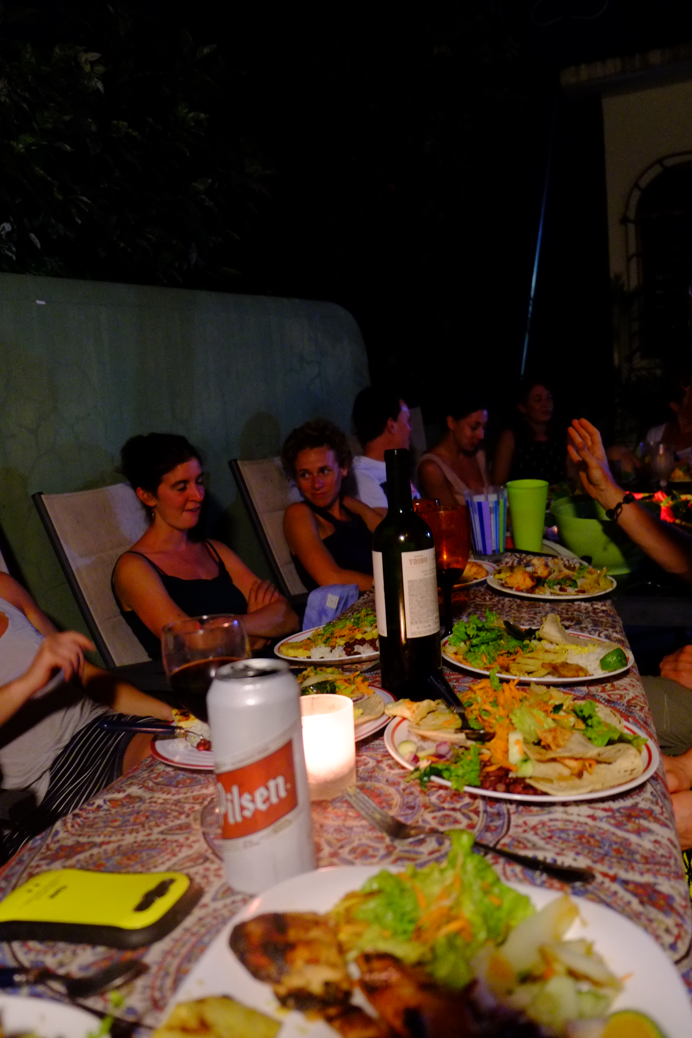 Another great meal. This time at Pura Villa. The center piece with wreath, machete and candles became our insignia. We extended the table with a surfboard. Never easy to accommodate over 20 people but these friends manage to make it look easy.