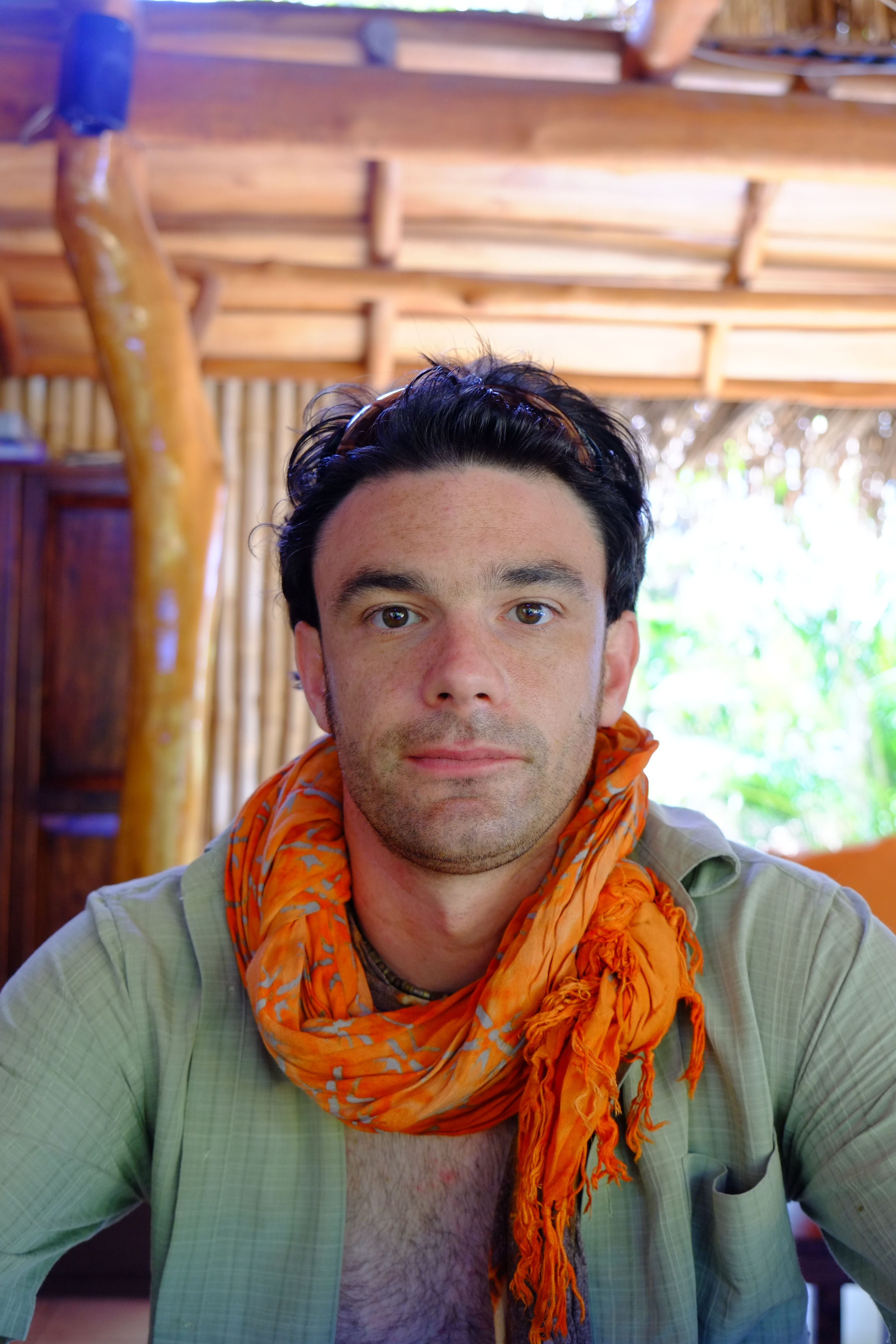 Julien after a full day on the ocean, pausing to say, “Hondo.”
