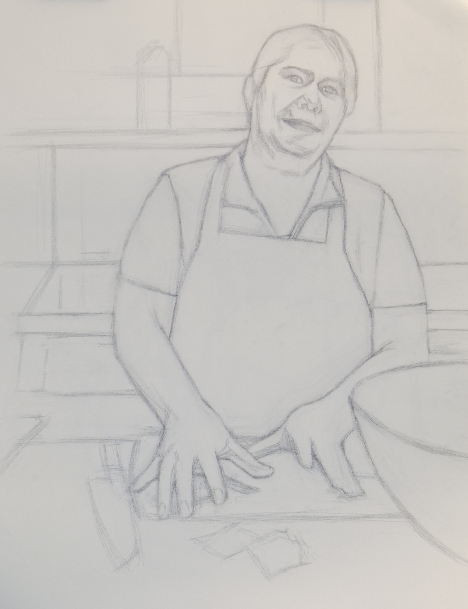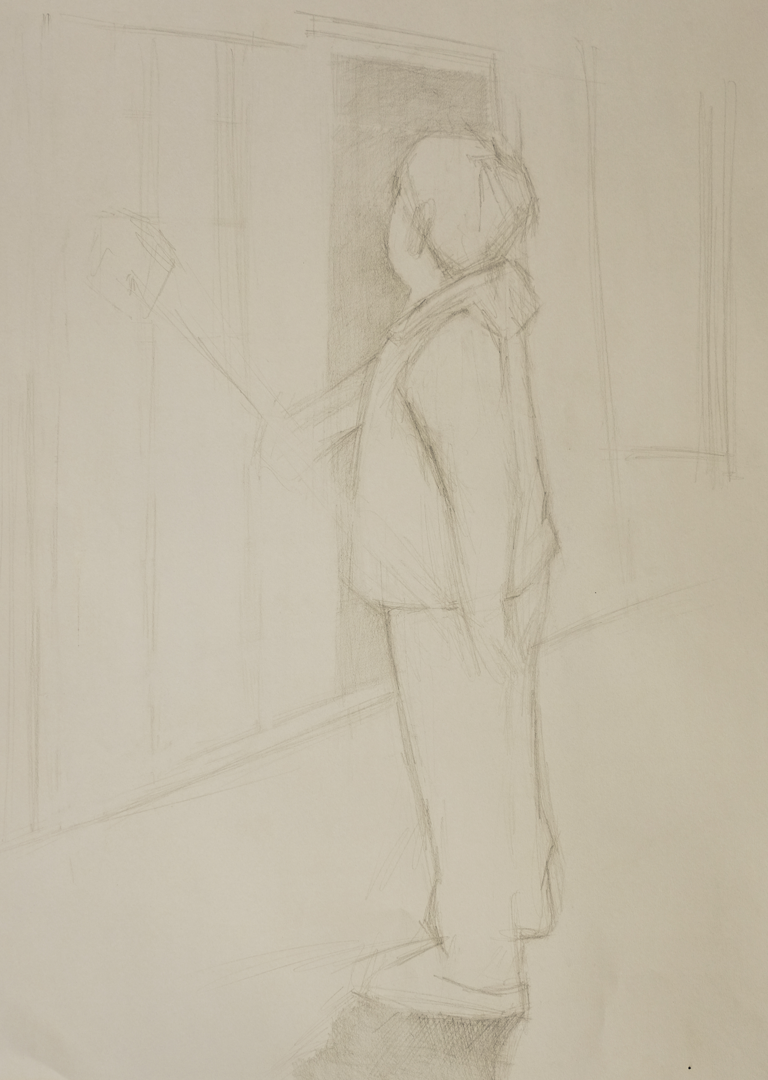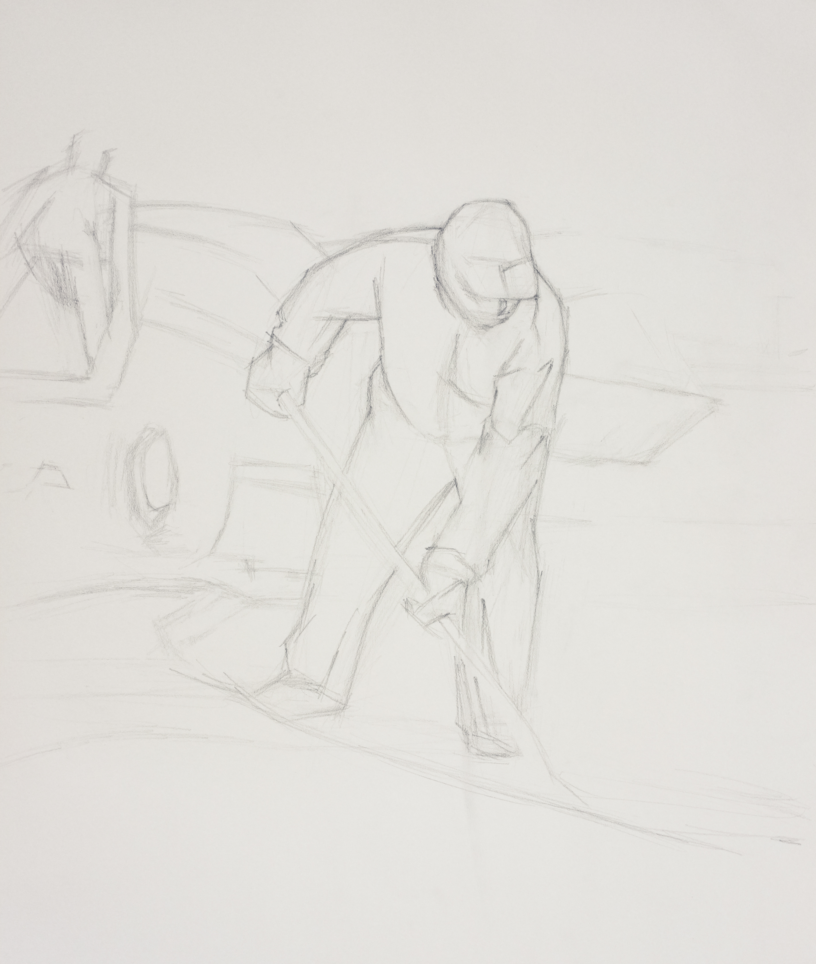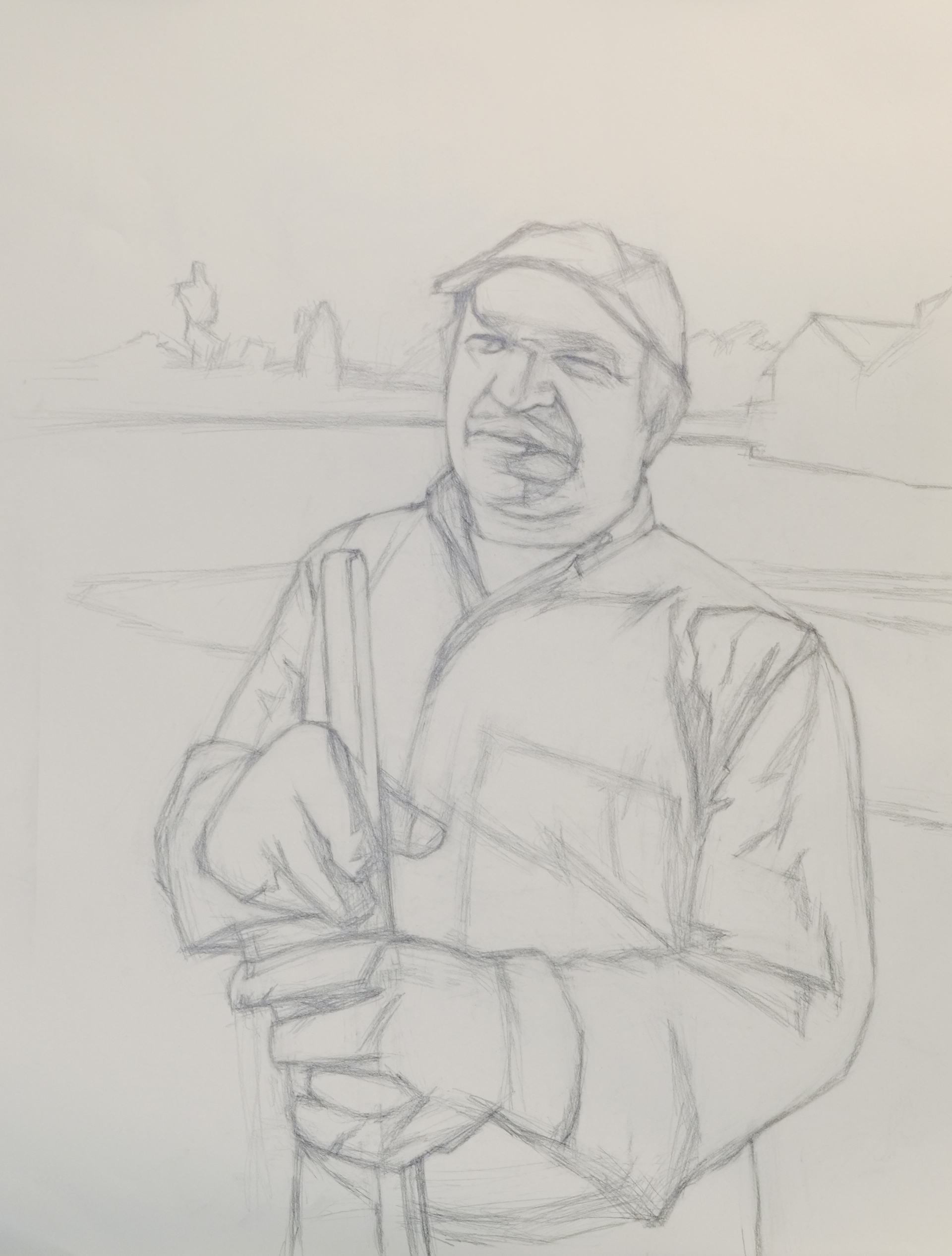 I have been drafting out ideas that I might paint. These are men and a women who I work with. Some of these drawings may be cartoons that I will transfer onto canvas. Pencil on paper is a way for me to explore composition and subject matter. On both fronts, I have a lot of exploring to do.