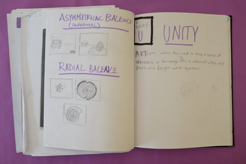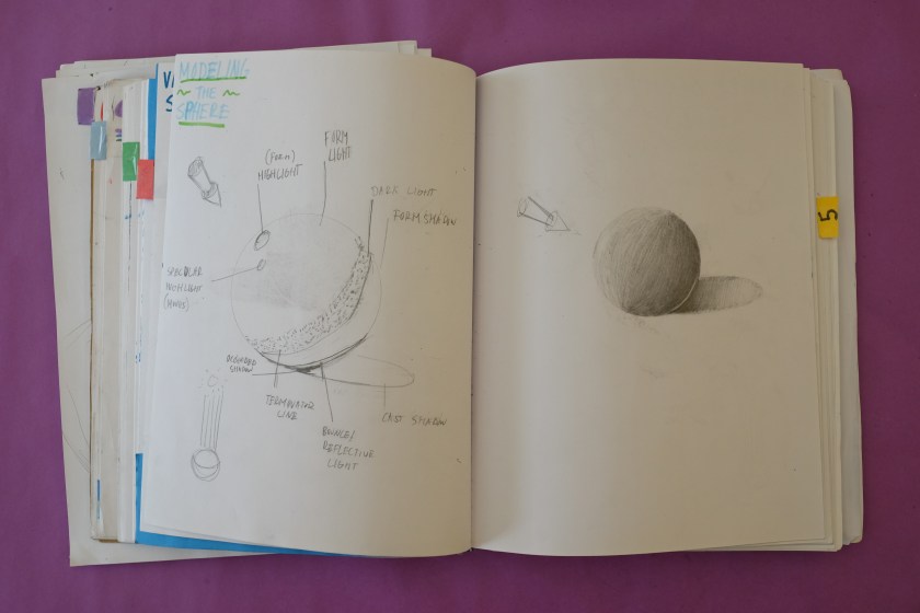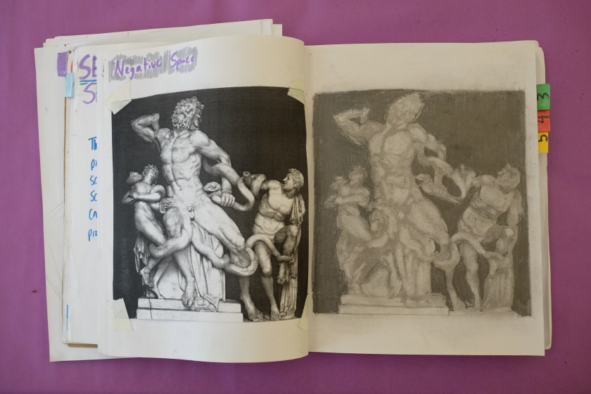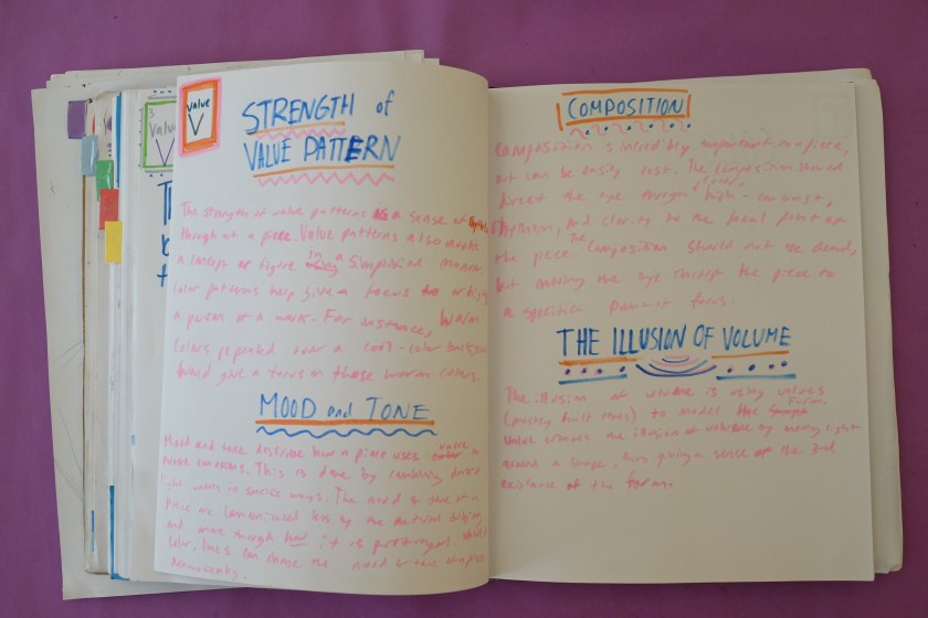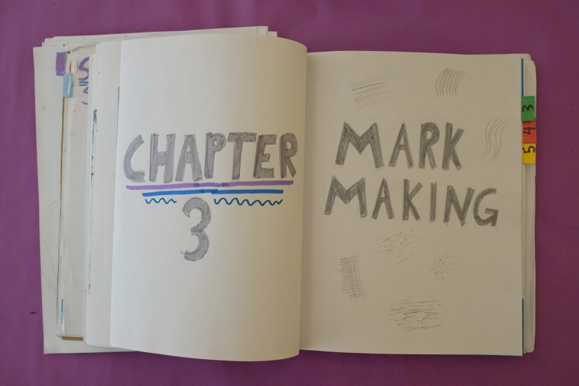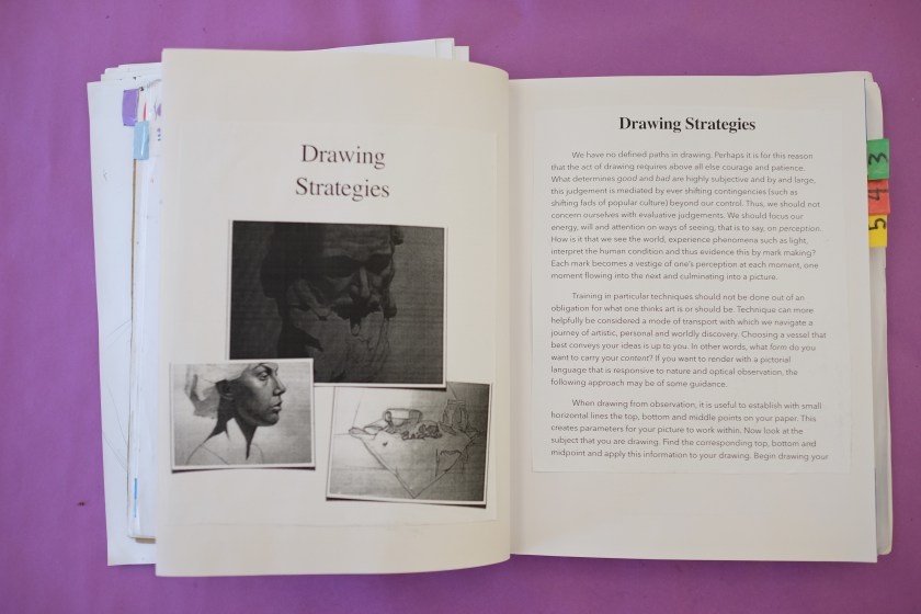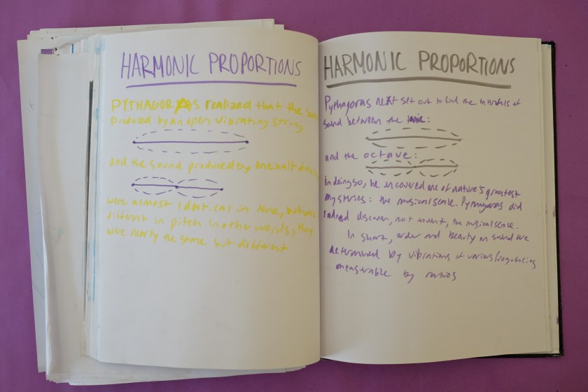 These textbooks are made by each student in Foundations. This is a project-based curriculum designed around the idea that we best construct knowledge and meaning not in a top down manner but when we actively assemble it ourselves. In making our own books, students personally assemble a body of knowledge and experience that, if all goes well, facilitates strong and durable neurological connections. For one, the act of construction is playful and encourages child-like inquiry. This playful involvement allows for mistakes, for stumbling and for self discovery. Students also become emotionally invested in their books. With some guidance, they are the ones actively designing what they learn. Over time these books will hopefully foster connections and promote a synthesis of materials.