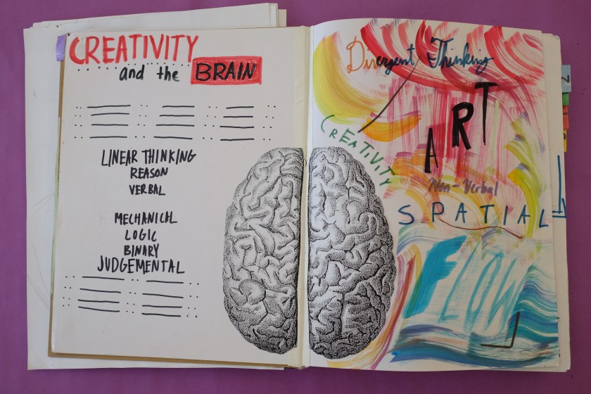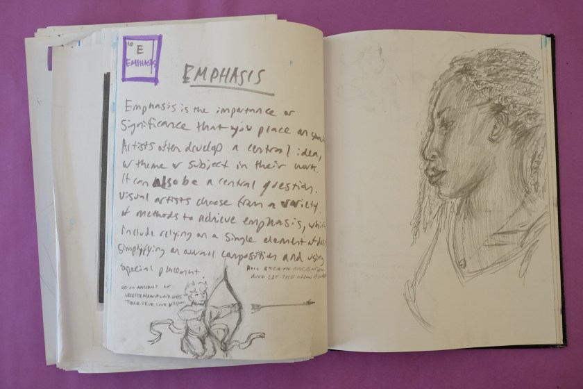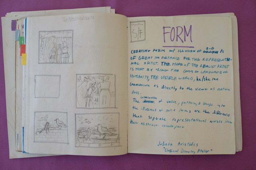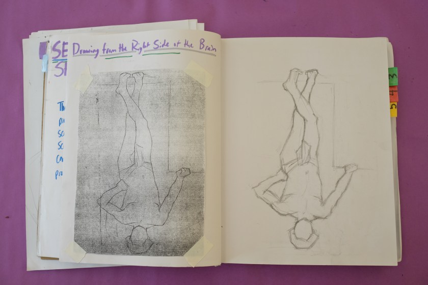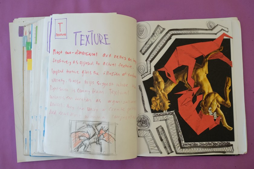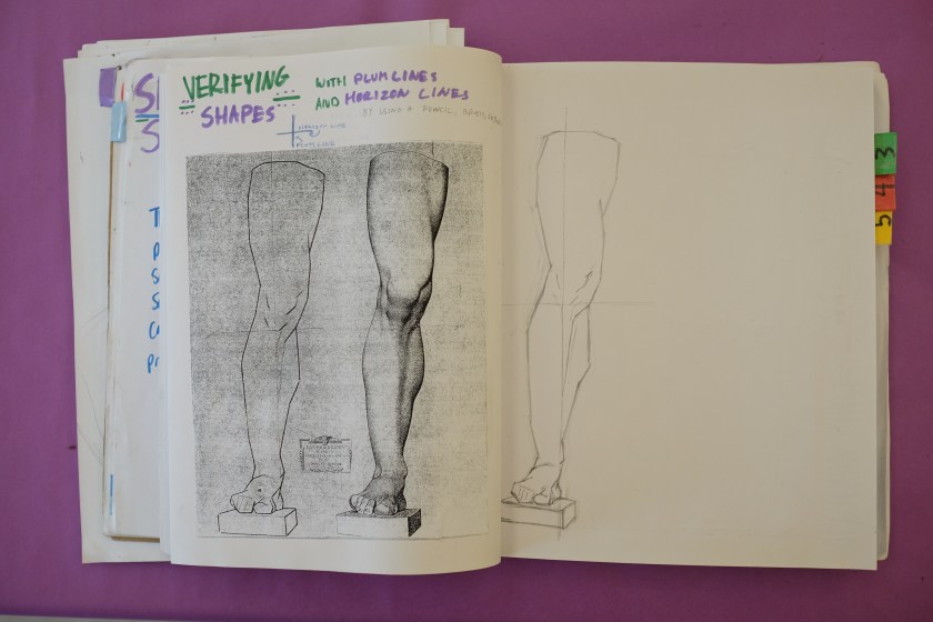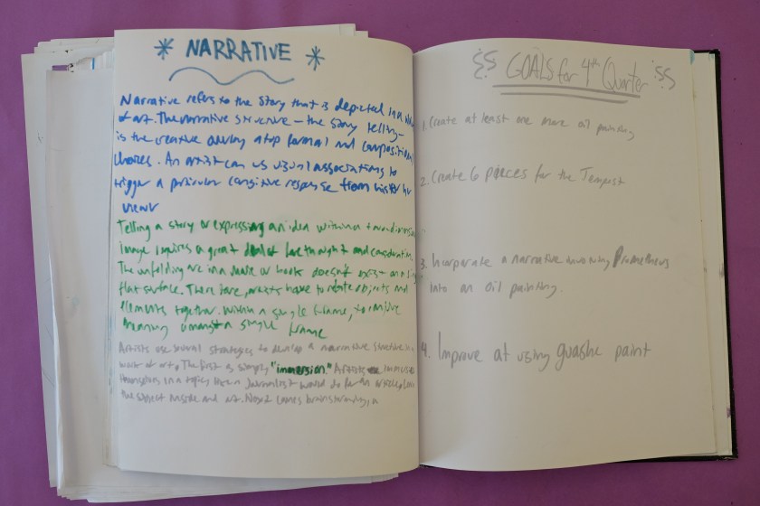 These textbooks are made by each student in Foundations. This is a project-based curriculum designed around the idea that we best construct knowledge and meaning not in a top down manner but when we actively assemble it ourselves. In making our own books, students personally assemble a body of knowledge and experience that, if all goes well, facilitates strong and durable neurological connections. For one, the act of construction is playful and encourages child-like inquiry. This playful involvement allows for mistakes, for stumbling and for self discovery. Students also become emotionally invested in their books. With some guidance, they are the ones actively designing what they learn. Over time these books will hopefully foster connections and promote a synthesis of materials.