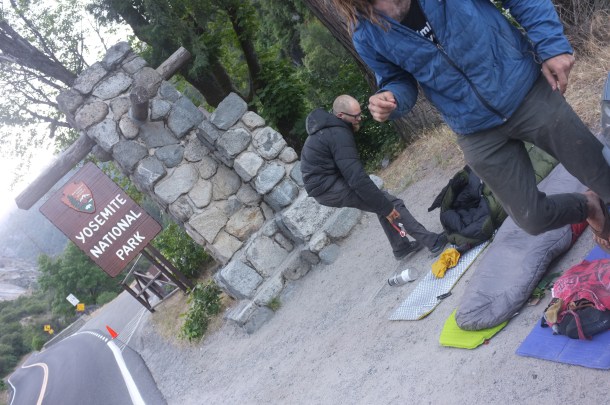 We spend the first night outside the park at the Rt 140 Entrance in El Portal. After an early start the next morning, we go to the Camp 4 Rangers Station and are able to get a site.