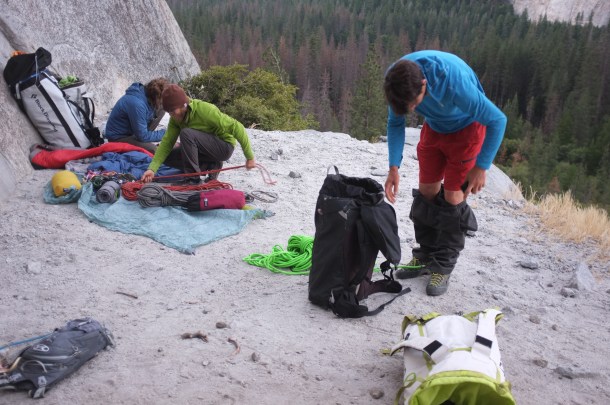 For the next four days and three nights we are on El Cap. We spend the first night on Sickle Ledge, second on Dolt Tower and third on El Cap Tower. Travel with three is slow and we haul a lot of weight in water, food and gear. On Dolt Tower, we are passed by Tommy Caldwell and Alex Honnold on their way to set a speed record of under two hours. After three nights, we choose to retreat. 12 rappels and we are back on the ground.