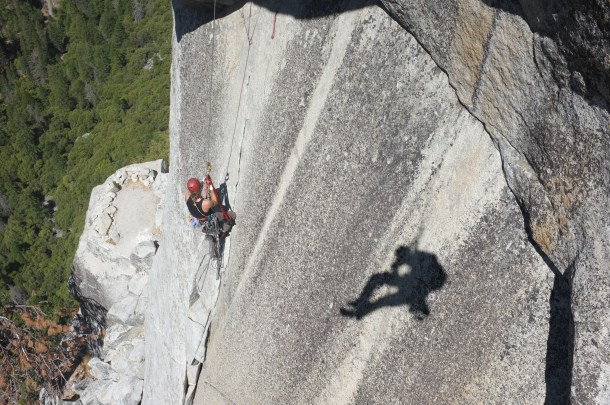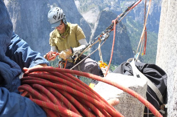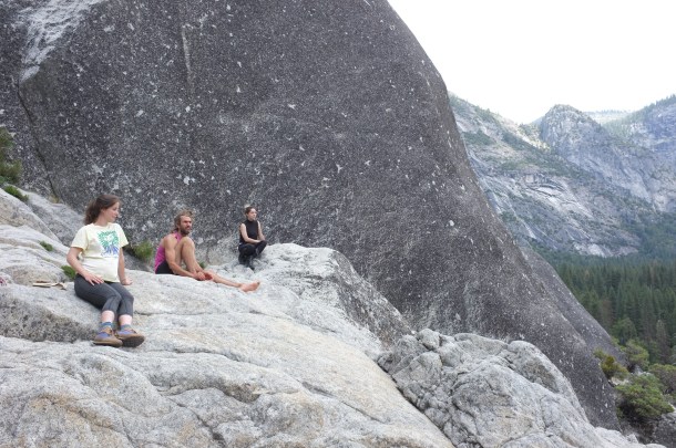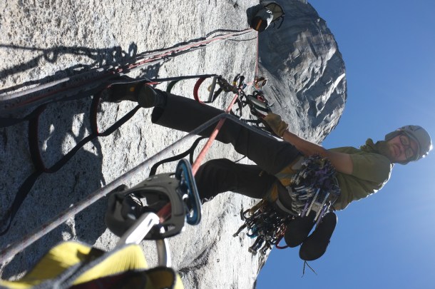 For the next four days and three nights we are on El Cap. We spend the first night on Sickle Ledge, second on Dolt Tower and third on El Cap Tower. Travel with three is slow and we haul a lot of weight in water, food and gear. On Dolt Tower, we are passed by Tommy Caldwell and Alex Honnold on their way to set a speed record of under two hours. After three nights, we choose to retreat. 12 rappels and we are back on the ground.