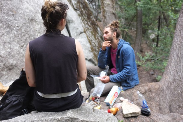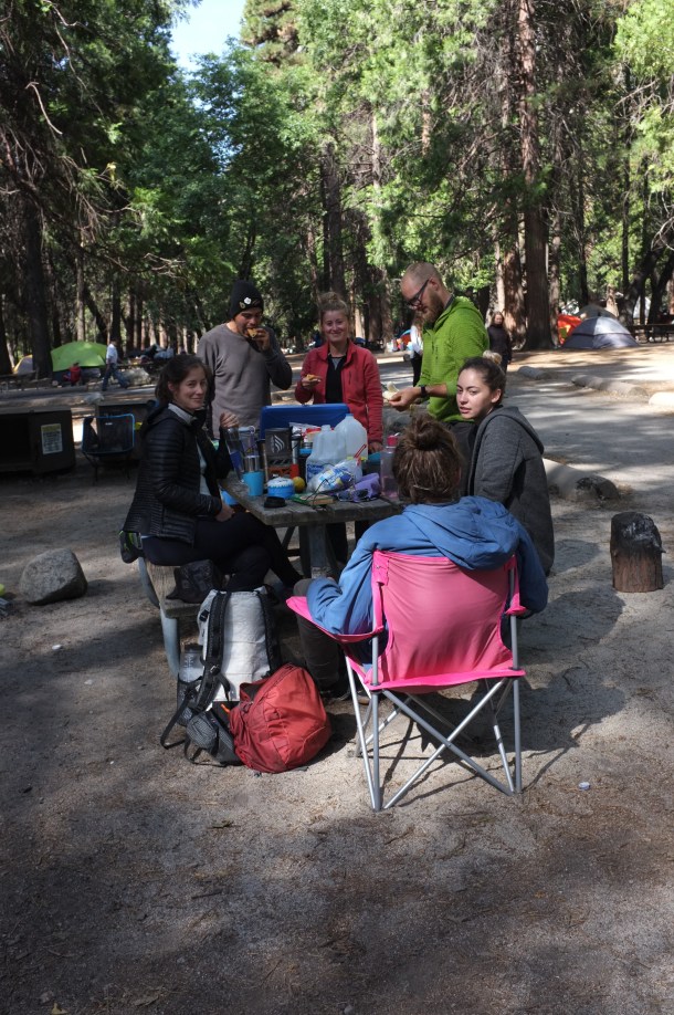 We spend the first night outside the park at the Rt 140 Entrance in El Portal. After an early start the next morning, we go to the Camp 4 Rangers Station and are able to get a site.