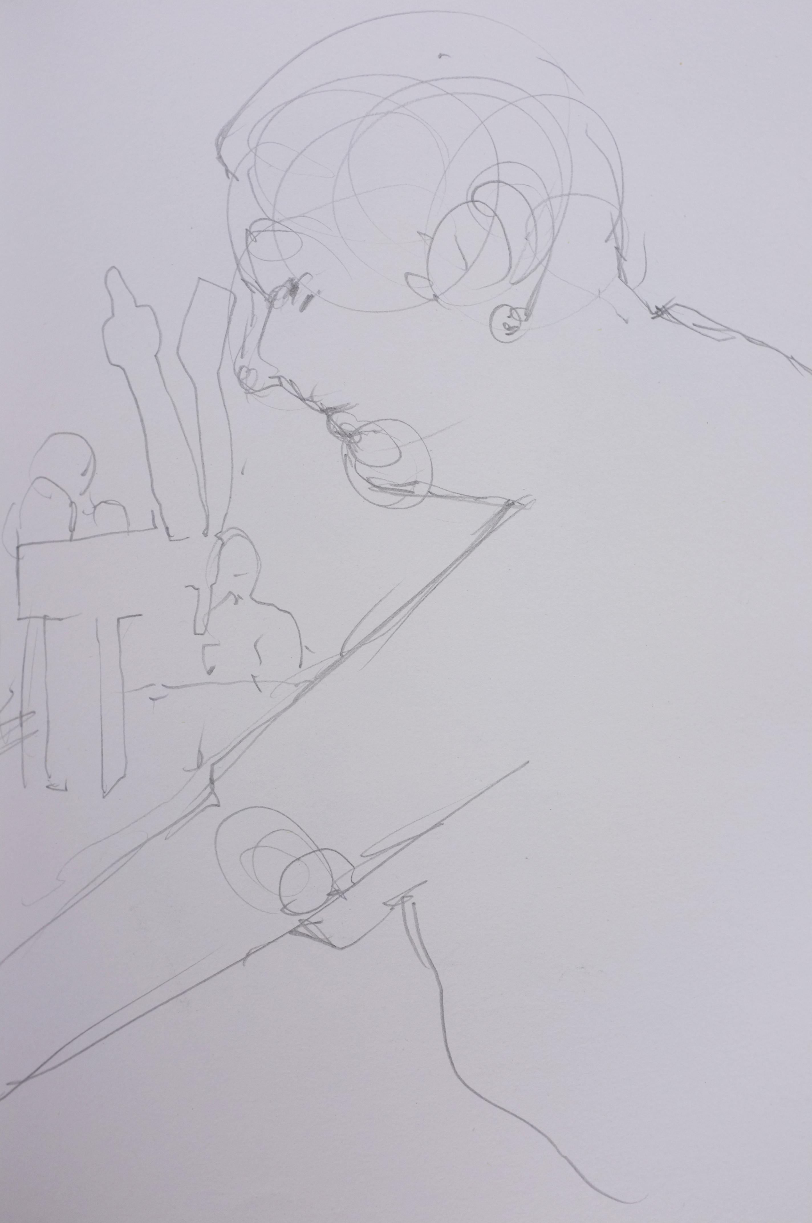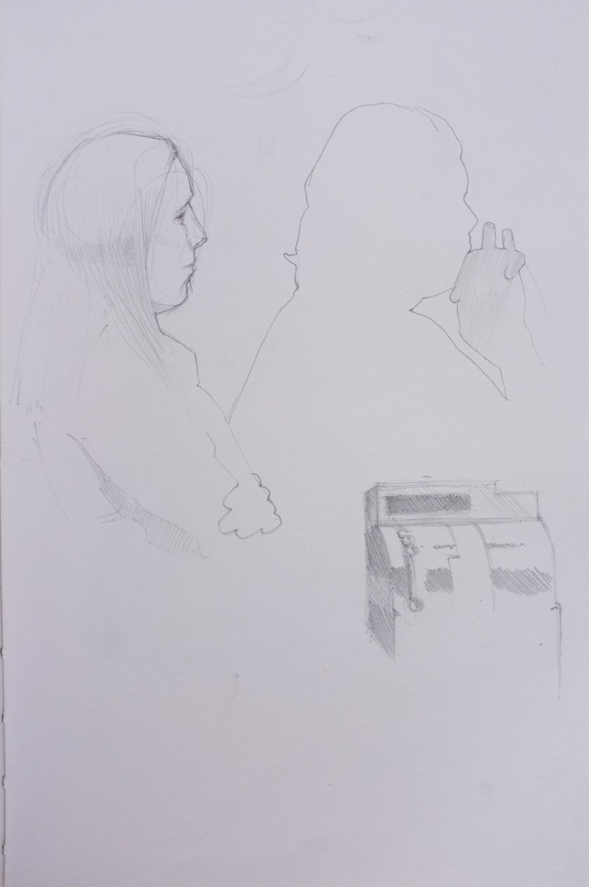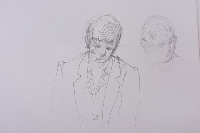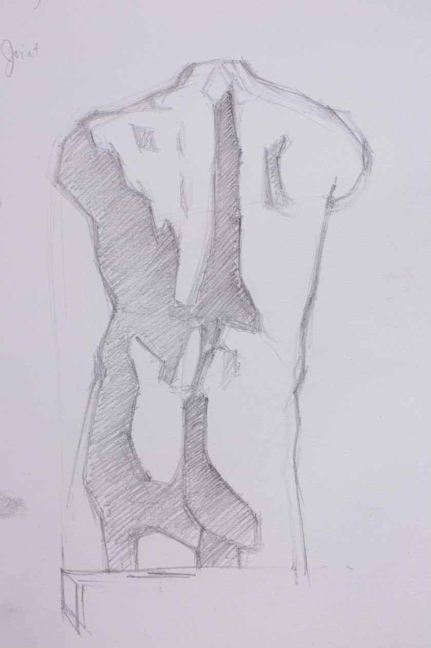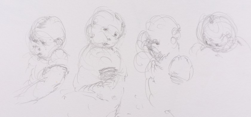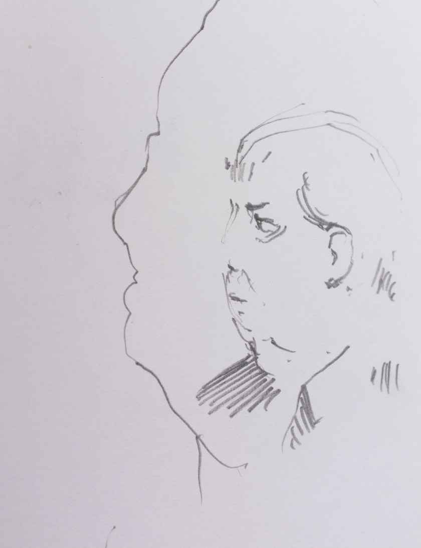 Here is a recent Alla Prima- meaning, at first attempt- portrait painting. This is a process I am not accustomed to and I feel a bit clumsy at it. This feeling, however, is matched with an equal enthusiasm for exploring this loose method of expression. As loose and free as this method may be, it is very helpful for me to have a plan- more like, a set of questions that I ask myself while painting- to build from. It makes sense to me to first block in the form with quick searching brushstrokes and thinned oils. This helps ensure a likeness. I am later questioning how to best ‘turn the form’ and give the portrait a sense of volume, while also asking which hues are present and how chromatic are they as they wrap toward or away from the light. I imagine that the questions I ask myself while working will grow increasingly nuanced as I gain more experience.